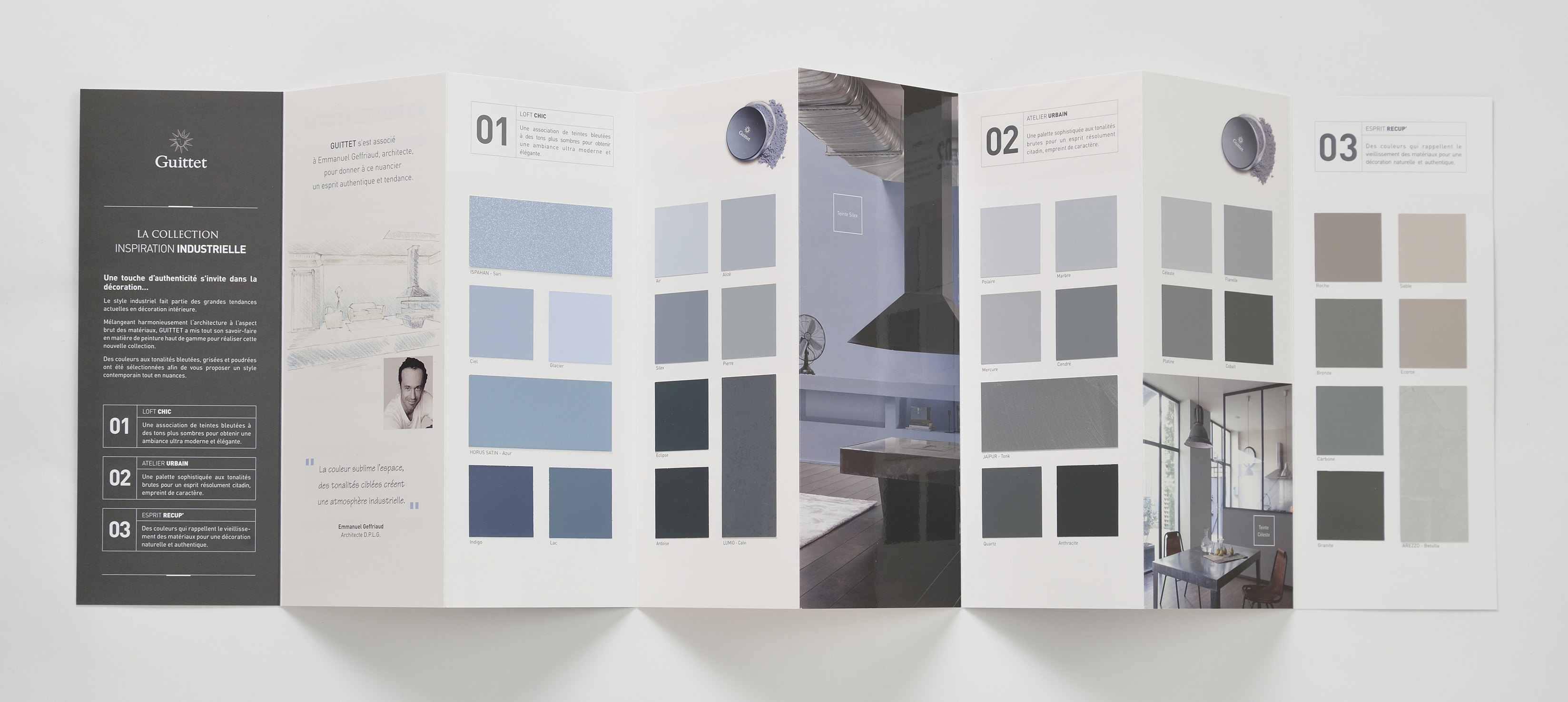 Guittet exprime, au travers de sa Collection SIGNATURE, toutes les facettes de sa personnalité. La Collection SIGNATURE assoie sans équivoque la créativité sans limite et raffinée de la marque. Avec sa palette riche de 132 teintes, la Collection SIGNATURE est une invitation à faire l’expérience de la couleur. Apprivoiser ses teintes, jouer les associations et varier les proportions de ses multiples notes de couleurs, vous entrainent dans une véritable exploration pour créer un intérieur exprimant votre personnalité.